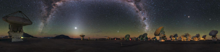阿塔卡馬大型毫米波/亞毫米波陣列由54座12米口徑天線和12座7米口徑天線組成陣列協(xié)同工作,實現(xiàn)毫米波至太赫茲(1THz)的觀測。